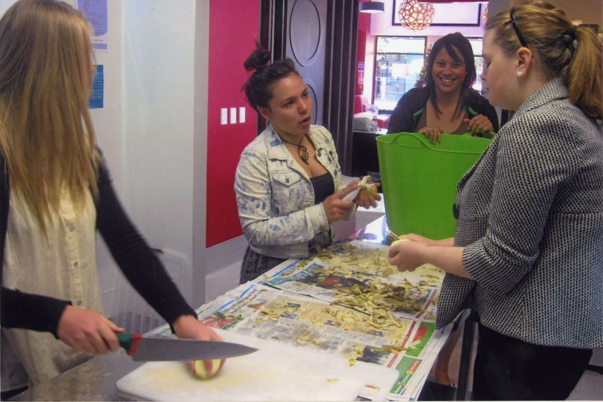 Peeling potatoes in preparation for the first Matariki celebration at Youth Space.