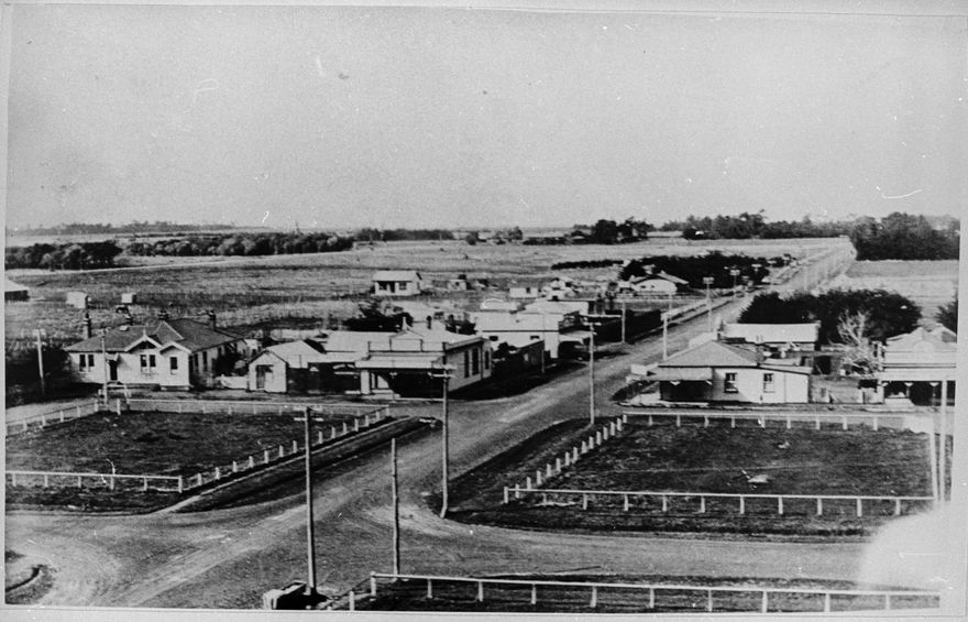The buildings on Douglas Square from left to right are: Mrs Clarke's Transport Depot, Bakers shop, Baylis Shoe Shop and Tea Rooms. Behind the shoe shop is Gould's Drapers Shop.