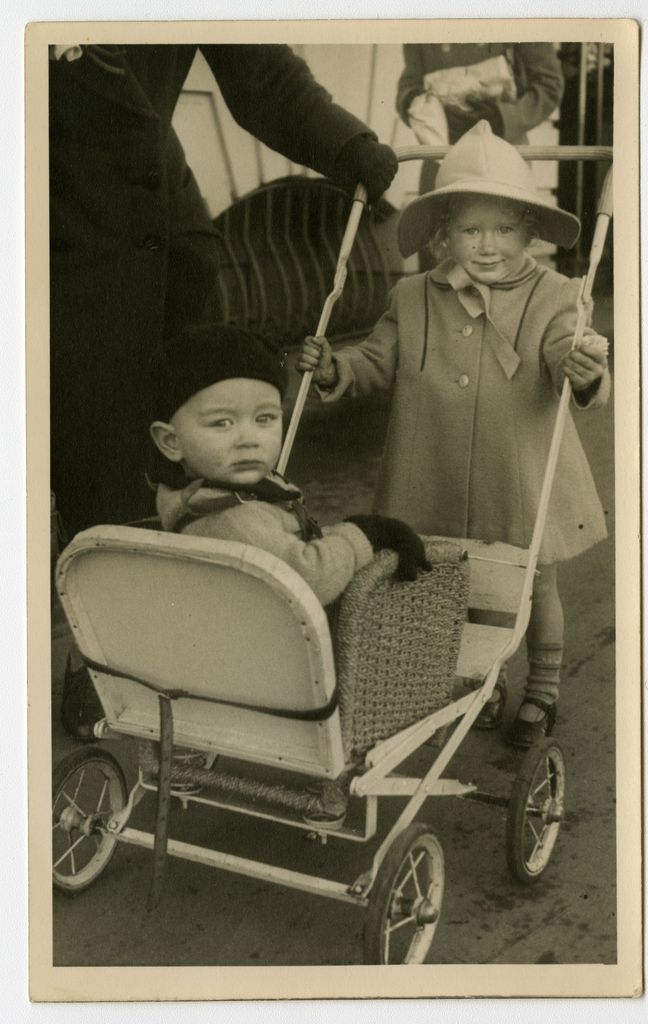- Maurice Shailer (in pushchair) with his older sister, Jennifer, during a visit to The Square in mid-1947.