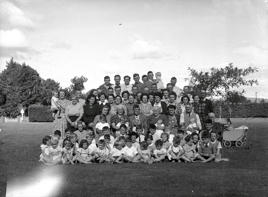 This group of adults and children are thought to be the Algie family enjoying a family reunion on 30 March c1951.
