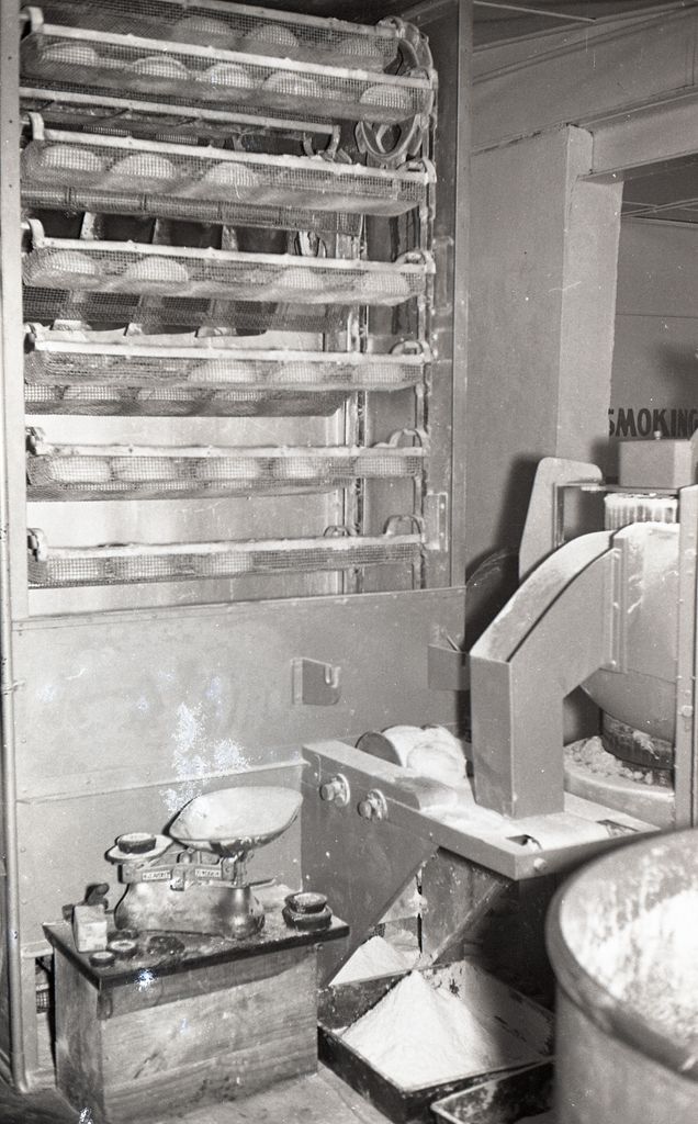 Caption: "The Manufacture of Bread - An Essential Food. The bread we eat each day is one of the many things we take for granted and Photorama on these three pages shows the process needed in the manufacture of bread. Bridewell Bakery Palmerston North and Levin is one of five bakers in this area who bake every night five nights a week producing our daily bread. This firm with a staff of 17 in Palmerston North and 11 in Levin turn out well over two million loafs of bread a year."