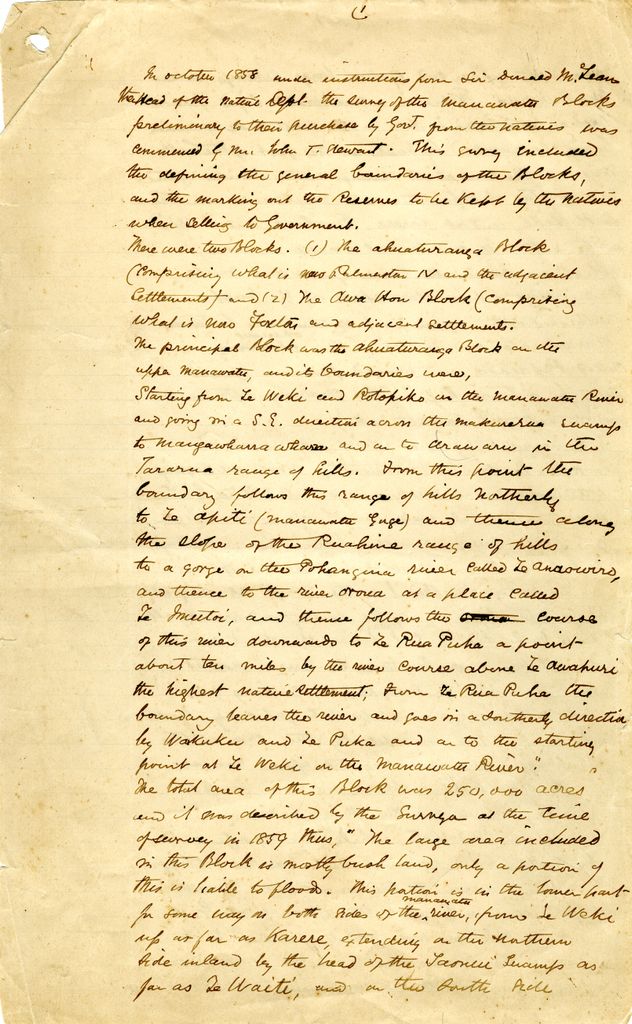 Handwritten Manuscript describing the Survey and Early European Settlement of the Manawatū (1858-1897)