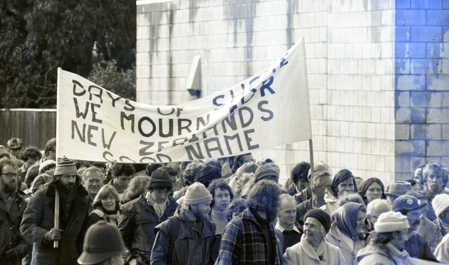This image was taken for a story that ran in The Manawatu Evening Standard on 15 August 1981, with the caption: "Protesters arrested in city march."