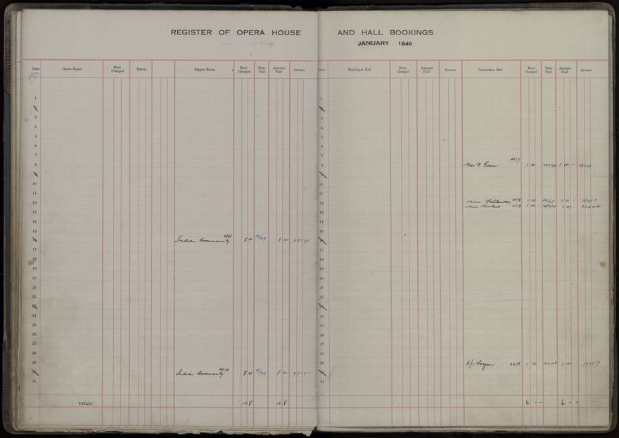 Municipal Opera House and Coronation Hall, Register of Bookings