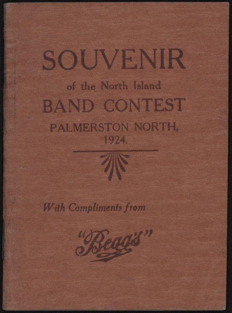 The North Island Band Contest was held in Palmerston North in 1924. It was arranged by the North Island Brass Band Association. Contains hints for bandsmen, bands entered and handwritten results.