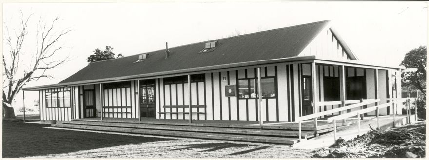 This cricket pavilion was new when this photograph was taken in 1981. It was built to replace the former pavilion, which had been damaged by fire. At the left of the new pavilion is the Jubilee room, built to commemorate the school's 75th Jubilee.