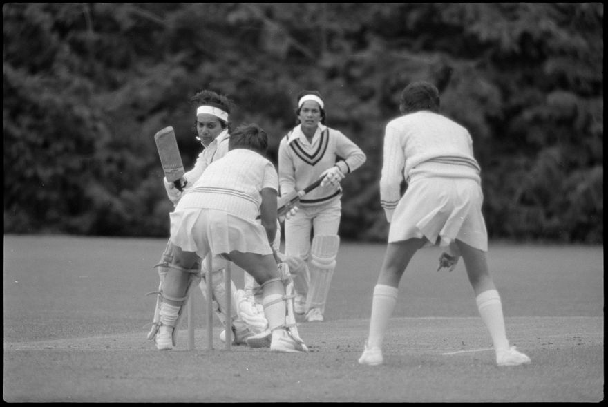 This image was taken (but not used) by the Evening Standard on 24 January 1982. It depicts the New Zealand Women’s Cricket team taking on the Indian Women’s Cricket team in a limited over (60) match for the Hansell's Vita Fresh Women's World Cup 1981/1982. The match was held at Fitzherbert Park. New Zealand won by 8 wickets.