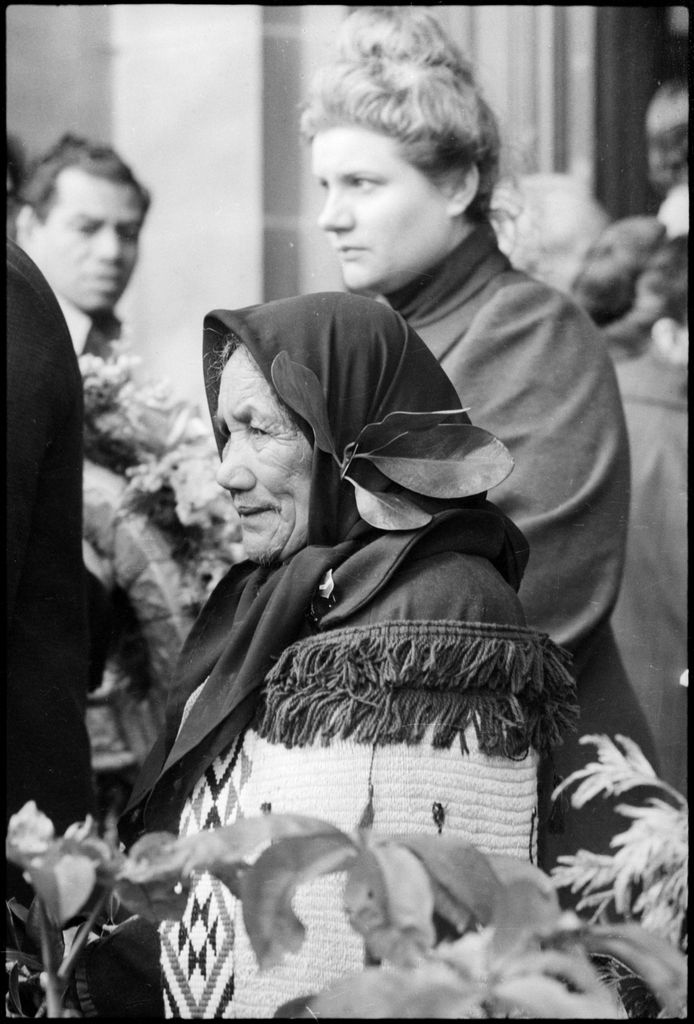 "Maori elder Rupi Wawatai, representing the Mahaki tribe of Gisborne on the steps of Parliament today."