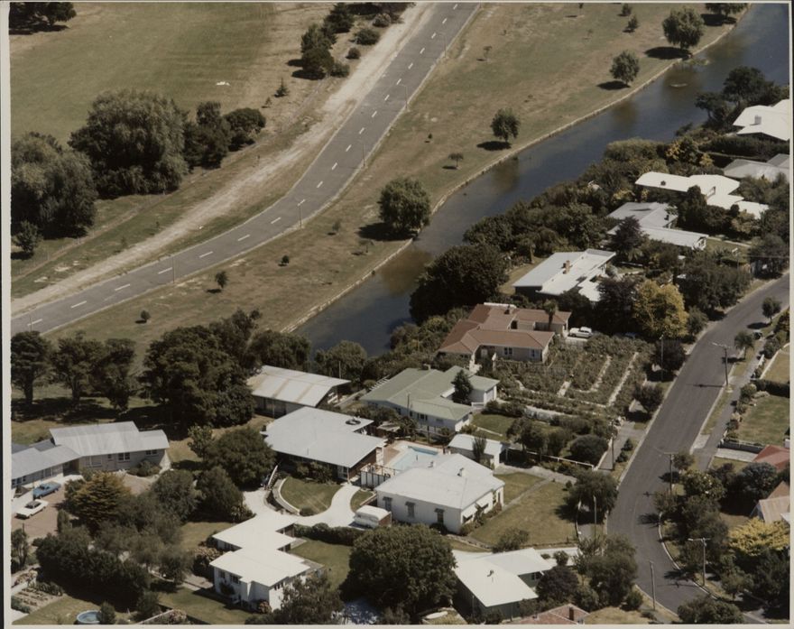 Aerial photograph of houses and properties on and around Centennial Drive.