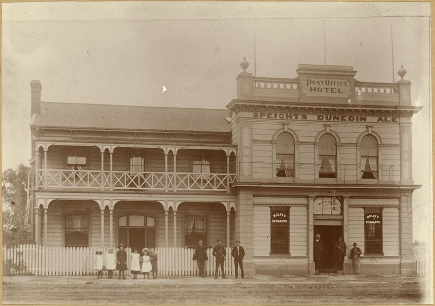 This two storied Hotel contained twenty rooms. It had two sitting rooms, a commercial room, and dining room on the Ground Floor, and a sitting room, ten bedrooms and bathrooms on the First Floor. W. Dalzell is listed above the door way as the proprietor.
