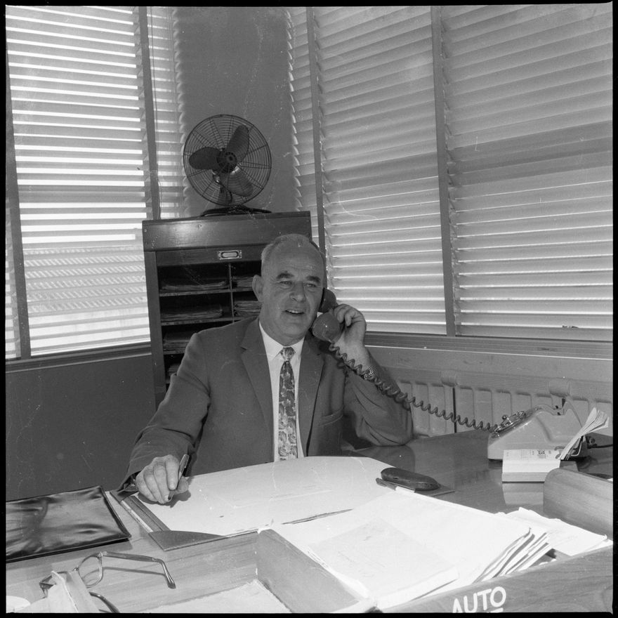 This image was taken for a story that ran in The Manawatu Evening Standard on 30th March, 1963. "Mr A. K. Malmo, the chief technician at the palmerston North telephone exchange in Church Street, is seen at work during his last day with the Post Office yesterday. Mr Malmo officially retires on Sunday after 41 years service."