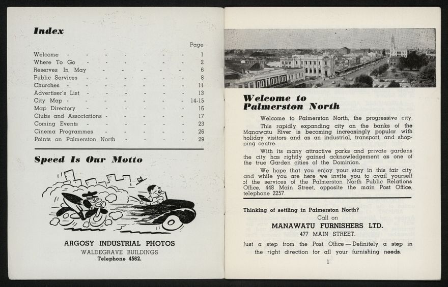A promotional booklet created by the Palmerston North Public Relations Organisation for visitors and new residents of Palmerston North.