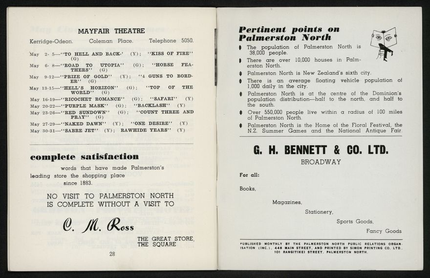 A promotional booklet created by the Palmerston North Public Relations Organisation for visitors and new residents of Palmerston North.