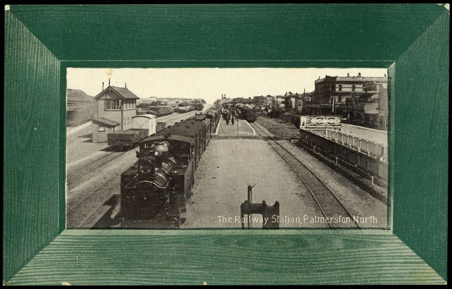 - A "posting album" containing post cards of some Palmerston North scenes, including the Post Office, The Square, the Hospital and the Railway Station. It includes a handwritten note that reads, "With lots of love, Mal [or Mae]".