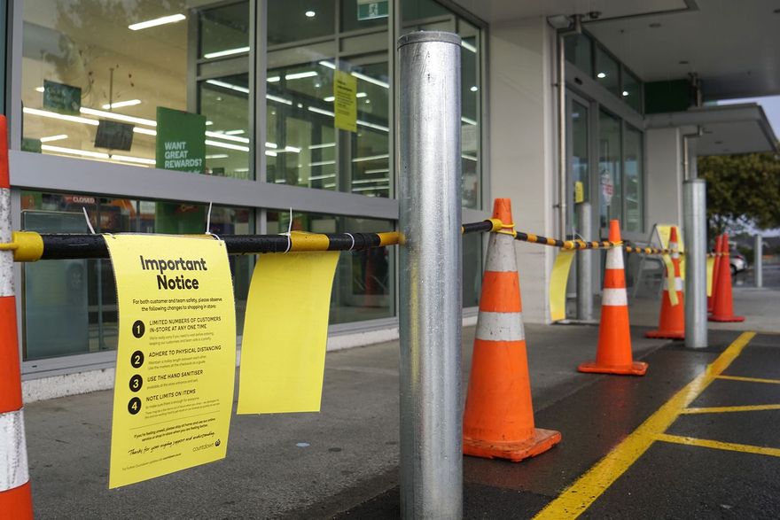 A sign at the Countdown supermarket on Broadway Avenue notifying customers of the conditions of entry during the COVID-19 pandemic.