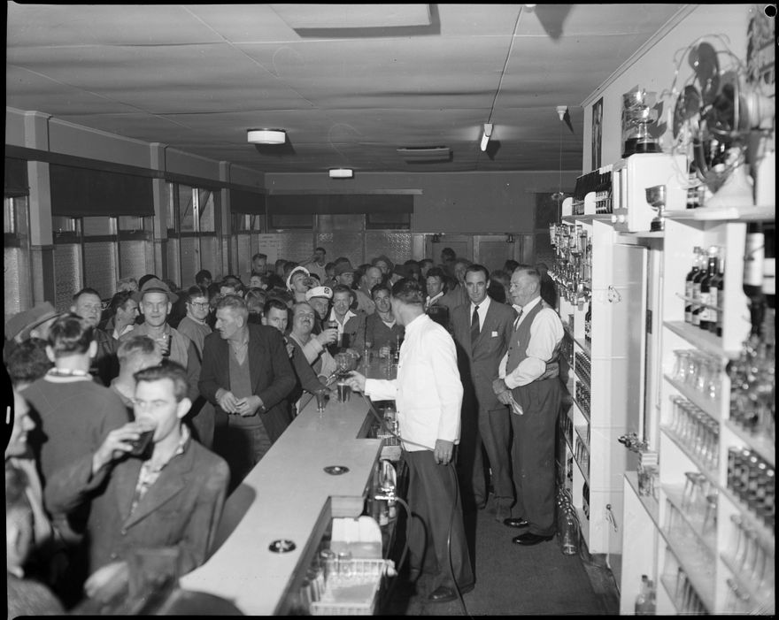 This image was not published in The Manawatu Evening Standard, however other images were published for a story that ran on 14 June, 1963. "Staff serve patrons at the newly opened White Horse Inn." See 2017N_2017-20_017716, 2017N_2017-20_017712