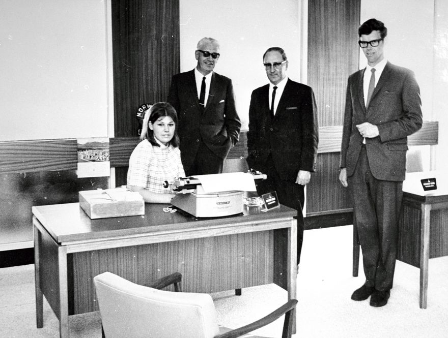 Taken at the official opening of the Northern Building Society's new building in The Square. At far right is Malcolm Monro, Manager.