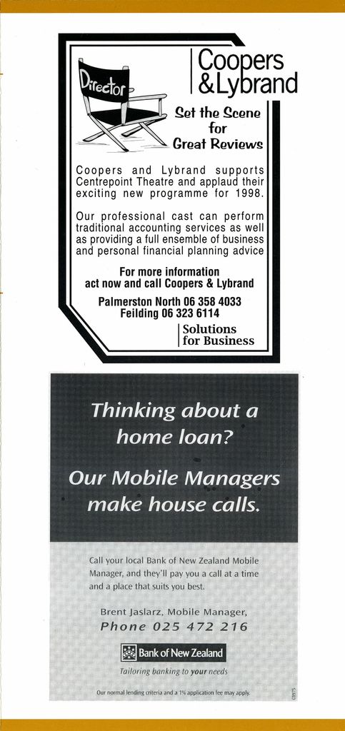Programme for a production of this play written by David Geary and directed by Alison Quigan.