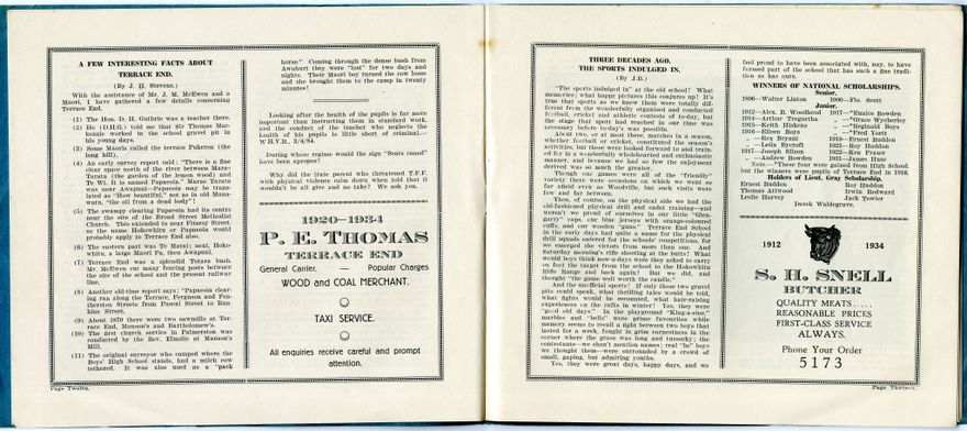 Terrace End School 50th jubilee booklet (1884-1934). Includes school history, photographs, local business advertisements, timeline of school-related events, and accounts of the jubilee celebrations.
