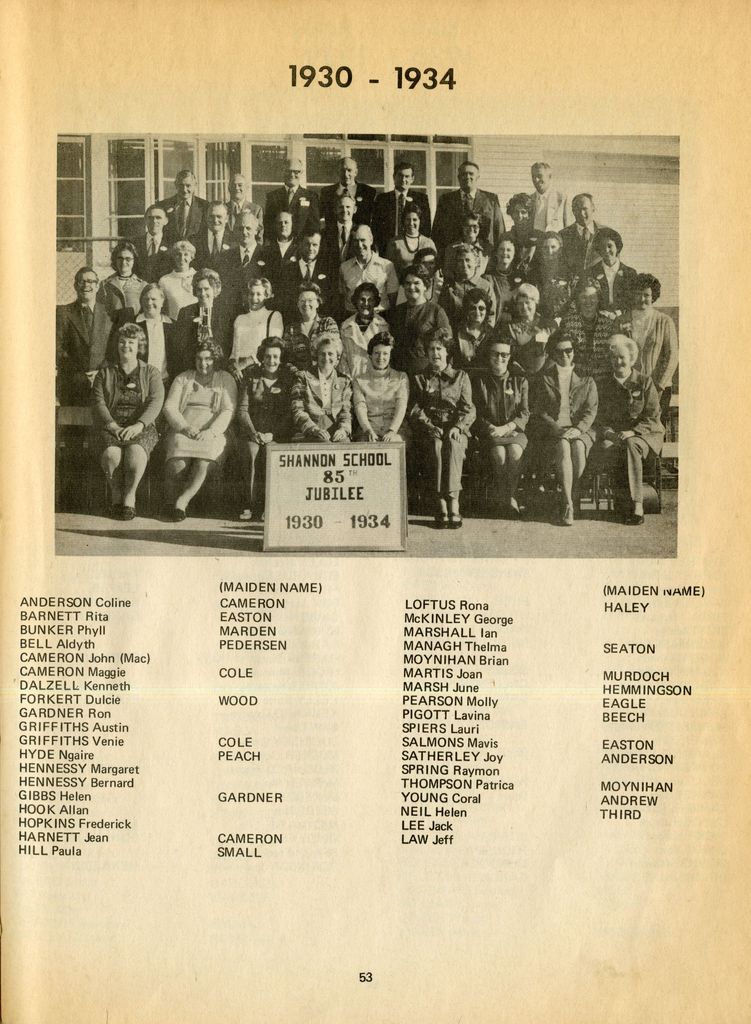 Shannon School 85th Jubilee - Past pupils from 1930-1934