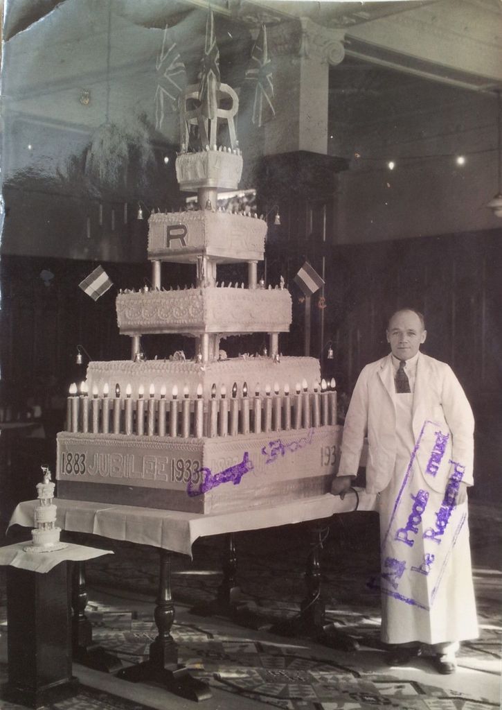 A cake baked and decorated by local baker Archie Cooper of Huntley Coopers for the C. M. Ross and Co Ltd jubilee celebrations in 1933.