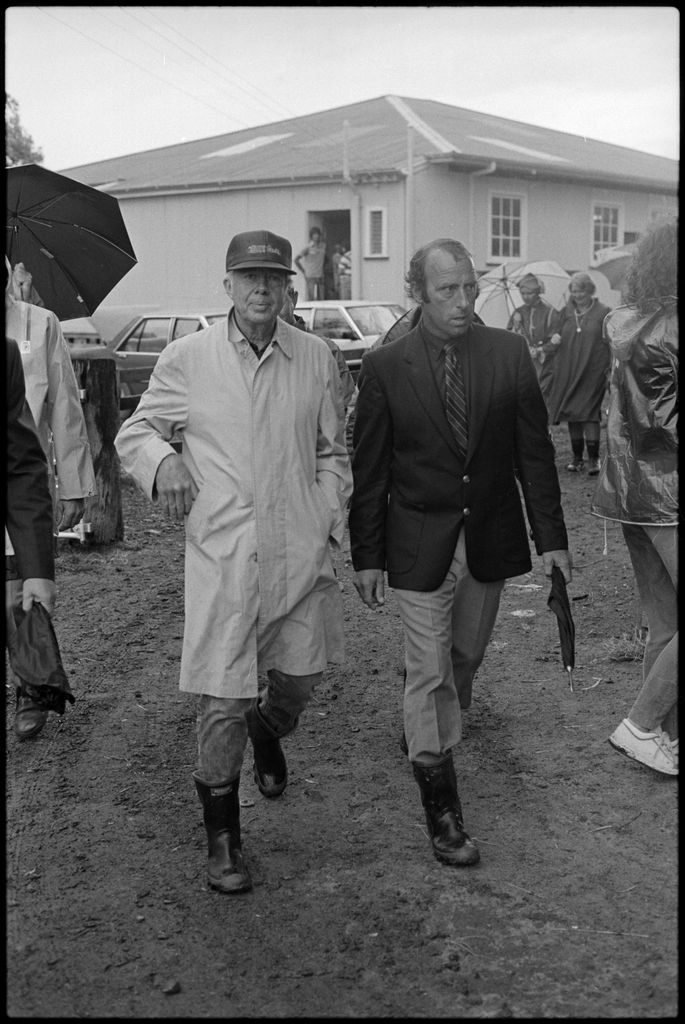 This image was taken by the Evening Standard on the 11th of February 1984 but was not published. It depicts former United States president Jimmy Carter and his wife Rosalynn visiting the hobby-farm of Richard and Barbara Walton at Aokautere.