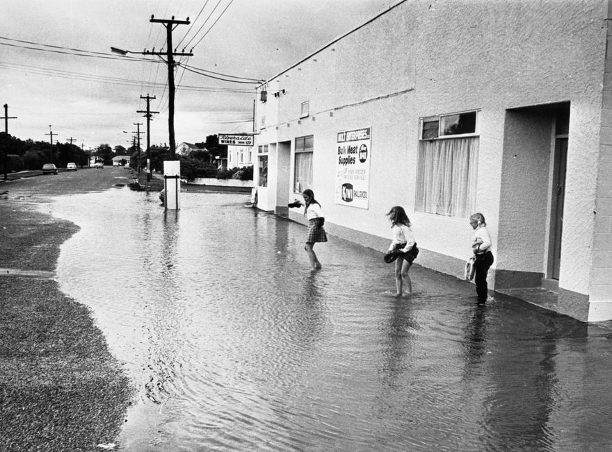 The Wine shop, butchery and grocery shop on the corner of Jickell Street and Moana Street, Palmerston North. This photograph was published in the Manawatu Evening Standard 10 October 1974.