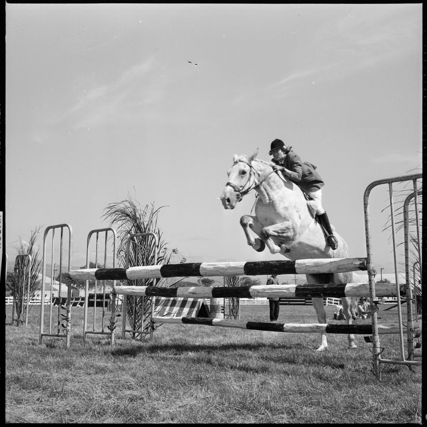 [Image of a horse jumping a fence, possibly at the Horowhenua A,. P. and I. Show.]
