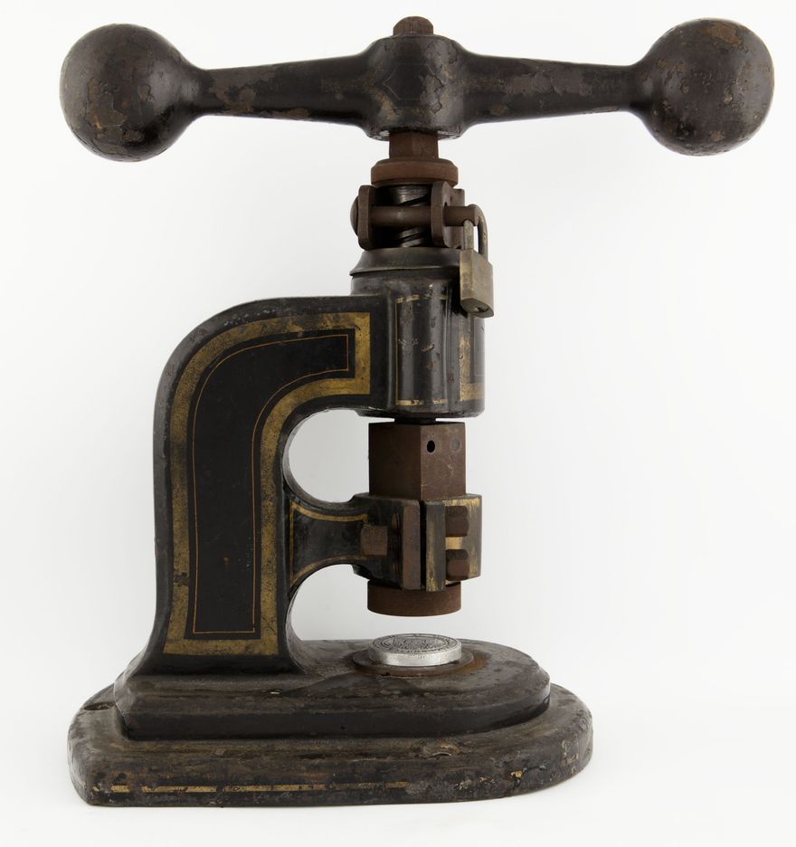 A large common seal press utilising a crank mechanism for impressing the common seal of the Palmerston North City Council upon documents.