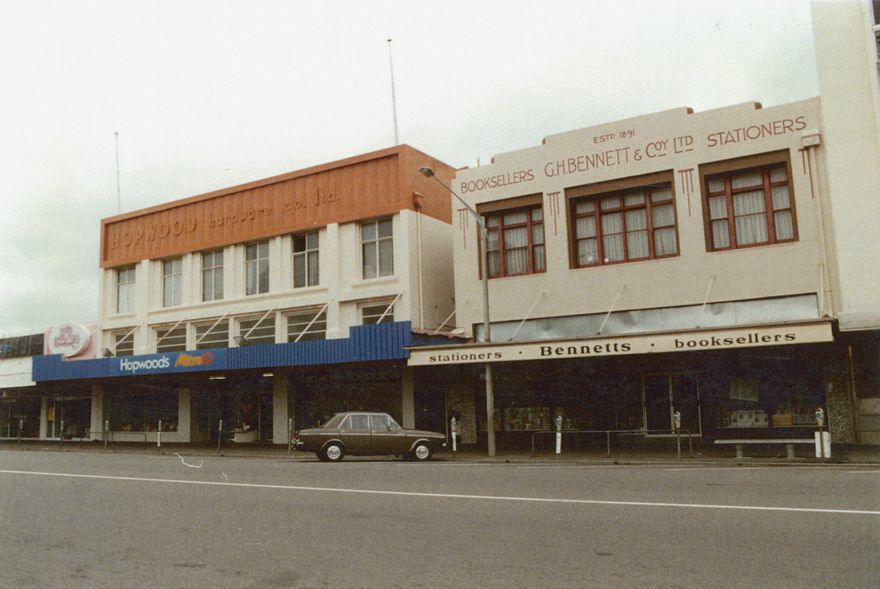 Hopwoods Mitre 10 and Bennett's bookshop, Broadway