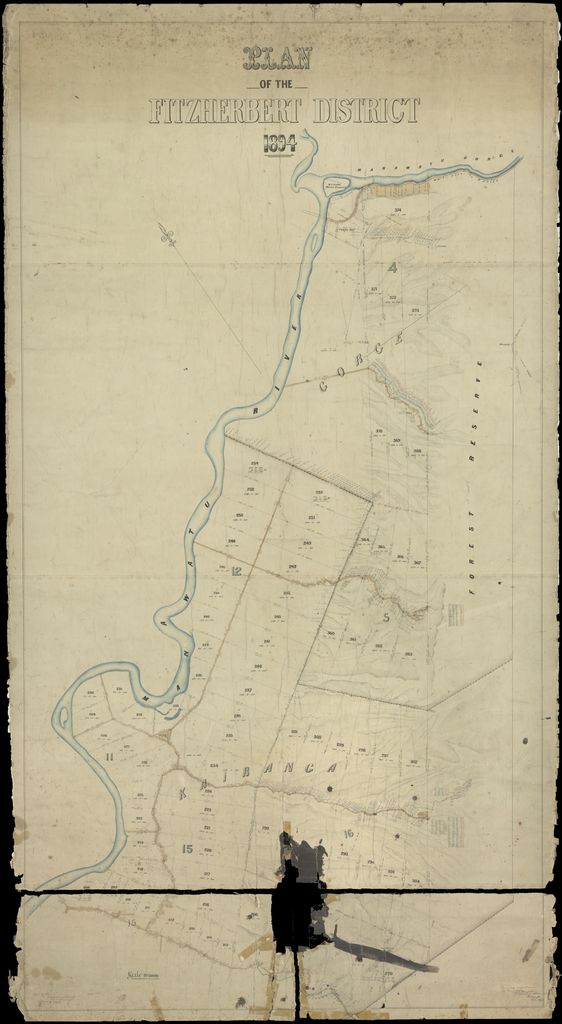 This map is from a set of three cadastral maps for the former Fitzherbert Road Board. This board was established in 1889 to administer the land between the south bank of the Manawatū River and Tararua Range, formerly controlled by the Manawatū Road Board. The Fitzherbert Road Board remained as a separate administration until 1902, when it was amalgamated with the Manawatū Road Board to form the Kairanga County Council.