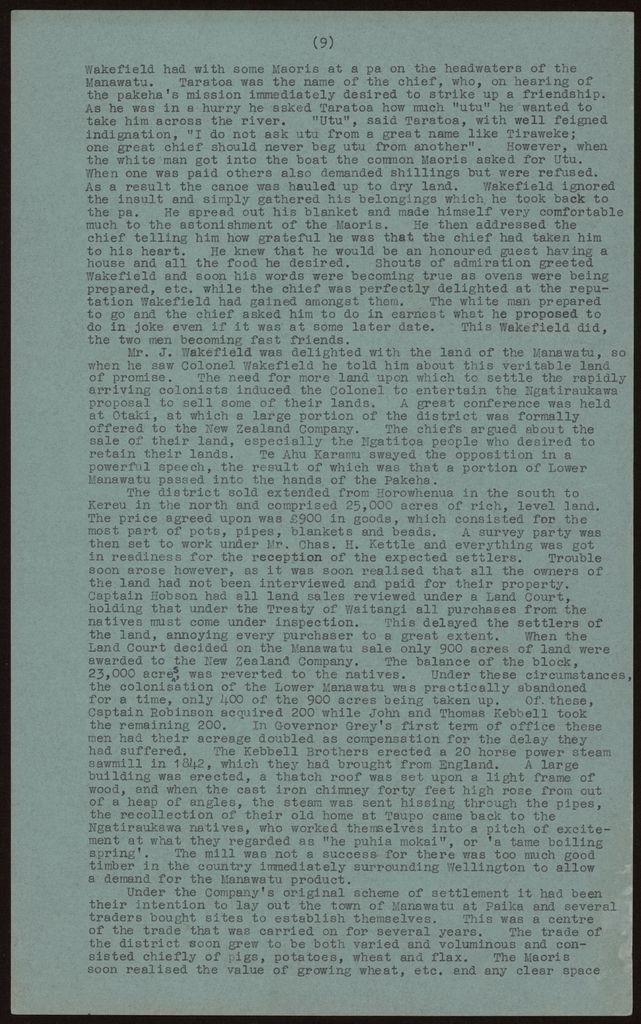 The history of the Manawatū outlined, followed by some newspaper cuttings and then images of Palmerston North from 1877 - 1927 and 1937.