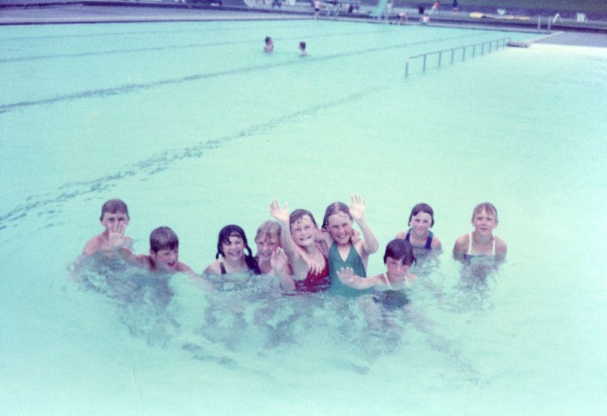 Room 12 of Pahiatua School had a swim at the Lido outdoor pool in Palmerston North on a visit to the city. the class was made up of Standard 1 and 2 pupils (now Years 3 and 4).