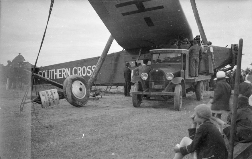 Preparing Charles Kingsford Smith's "Southern Cross" aeroplane at Milson Airport for repairs