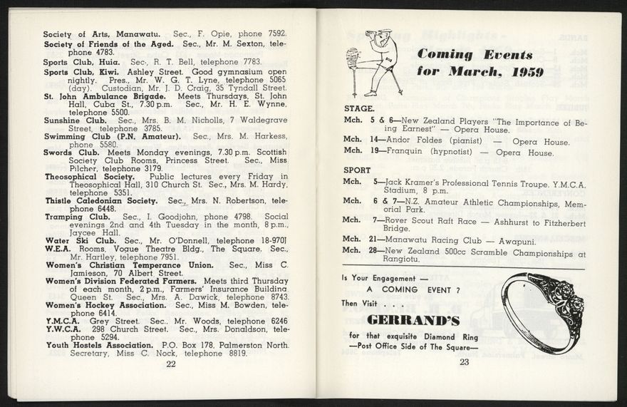 An informational booklet published monthly by the Palmerston North Public Relations Organisation (Inc.) to provide information for visitors and new arrivals to Palmerston North.
