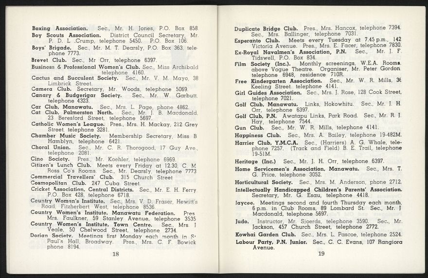 An informational booklet published monthly by the Palmerston North Public Relations Organisation (Inc.) to provide information for visitors and new arrivals to Palmerston North.