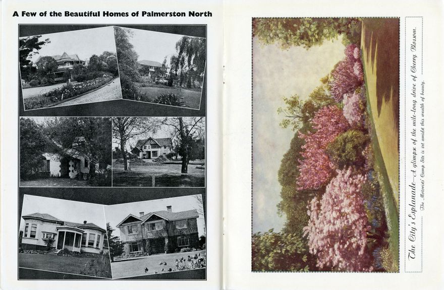 A promotional booklet, produced by the Palmerston North City Council. The cover reads, "You Must Come and See Us Too!". Contents include photographs and information about: The Square, the Lakelet, municipal buildings, the Esplanade, the Fitzherbert Bridge, Botanical Gardens, City Library, City Reserves (parks), abbatoir, Awapuni Racecourse, the Fire Station, Bus Service, sport facilities, Ladies Rest building (toilets), Chief Post Office, Railways and State buildings, the Police Station, schools, streets, All Saints Children's Home, Willard Children's Home, Plunket Society Rooms, Women's Division Farmers' Union Rest Home, Churchs and other ecclesiastical buildings, industrial buildings, Palmerston North Hospital, Milson Aerodrome and more. Original publication found in PNCC Archives 1/17/5