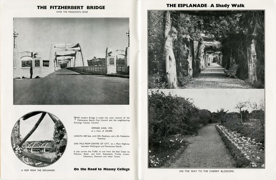 A promotional booklet, produced by the Palmerston North City Council. The cover reads, "You Must Come and See Us Too!". Contents include photographs and information about: The Square, the Lakelet, municipal buildings, the Esplanade, the Fitzherbert Bridge, Botanical Gardens, City Library, City Reserves (parks), abbatoir, Awapuni Racecourse, the Fire Station, Bus Service, sport facilities, Ladies Rest building (toilets), Chief Post Office, Railways and State buildings, the Police Station, schools, streets, All Saints Children's Home, Willard Children's Home, Plunket Society Rooms, Women's Division Farmers' Union Rest Home, Churchs and other ecclesiastical buildings, industrial buildings, Palmerston North Hospital, Milson Aerodrome and more. Original publication found in PNCC Archives 1/17/5