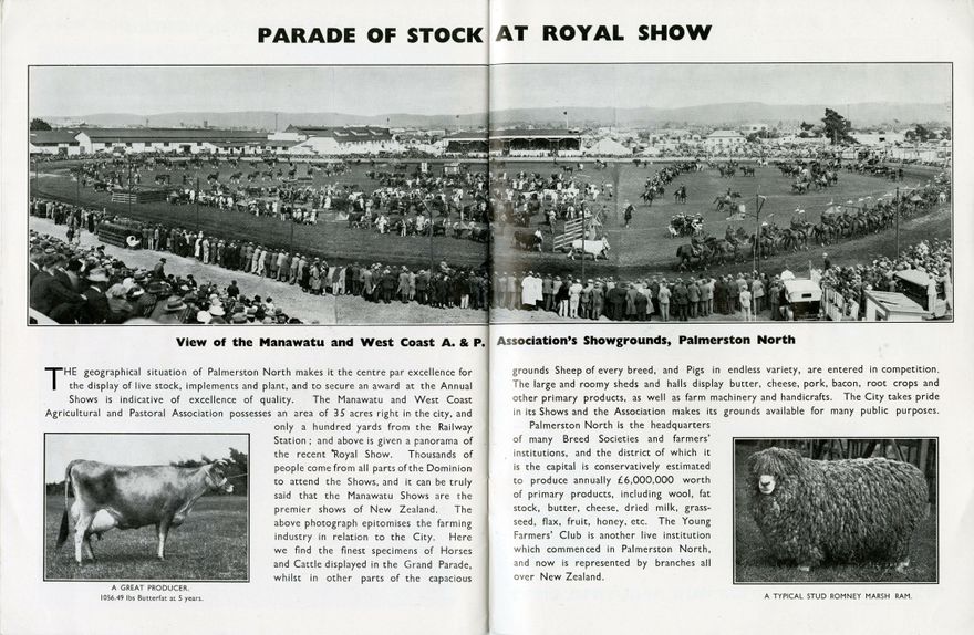 A promotional booklet, produced by the Palmerston North City Council. The cover reads, "You Must Come and See Us Too!". Contents include photographs and information about: The Square, the Lakelet, municipal buildings, the Esplanade, the Fitzherbert Bridge, Botanical Gardens, City Library, City Reserves (parks), abbatoir, Awapuni Racecourse, the Fire Station, Bus Service, sport facilities, Ladies Rest building (toilets), Chief Post Office, Railways and State buildings, the Police Station, schools, streets, All Saints Children's Home, Willard Children's Home, Plunket Society Rooms, Women's Division Farmers' Union Rest Home, Churchs and other ecclesiastical buildings, industrial buildings, Palmerston North Hospital, Milson Aerodrome and more. Original publication found in PNCC Archives 1/17/5