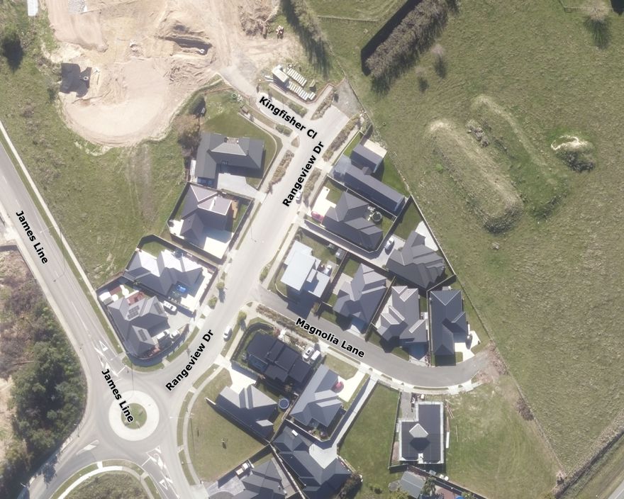 The drive is named to acknowledge and highlight the view of the Ruahine and Tararua Ranges from the development. February 2020.