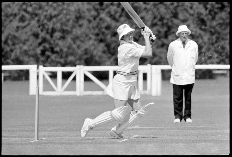 This image was taken (but not used) by the Evening Standard on 20th of January 1982 and published on the 21st. It depicts the Australian women’s cricket team taking on the International XI women’s team in a limited over match for the Hansell's Vita Fresh Women's World Cup 1981/1982. The match was held at Fitzherbert Park in Palmerston North. The Australian team won by 64 runs.