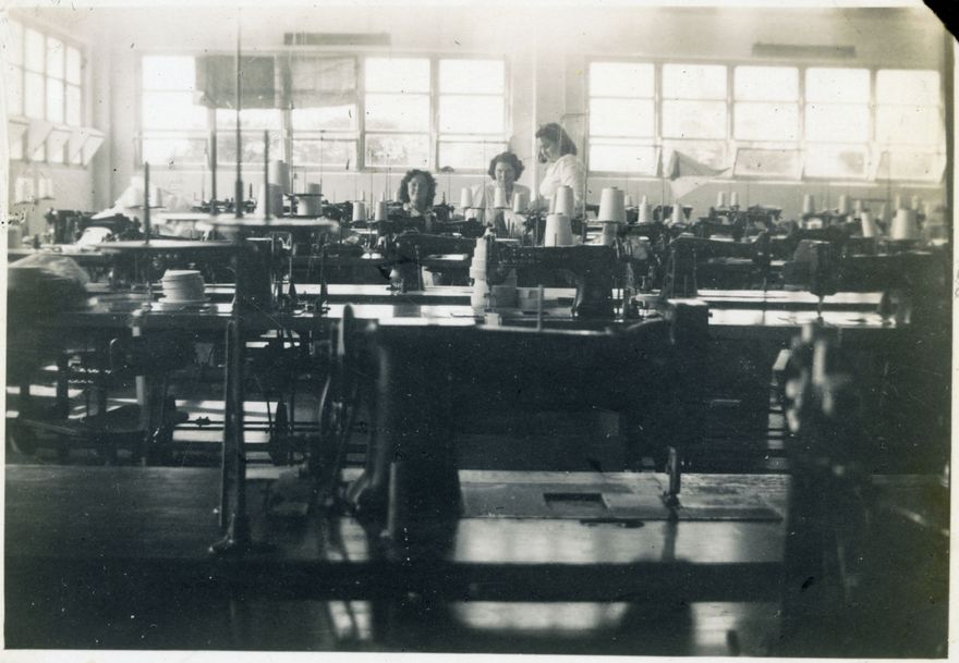 Three women sit behind sewing machines at the Libertyland Factory in Palmerston North. R W H Symington and Co. (N Z) Ltd first established themselves in New Zealand in 1934. Specialising in corsetry and underwear manufacturing, a small factory was built in Palmerston North in 1937, and the main "Libertyland " factory was completed and opened in 1946. The company was acquired by Courtalds Pty (UK) in 1965 and then in 1990 became a wholly owed subsidy of Lane Walker Rudkin (LWR) lndustries Ltd, New Zealand’s largest textile garment company. Libertyland closed to business in July 2009, and was demolished in 2012.