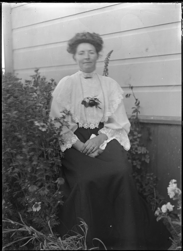 This photograph was created by William James Young in the early 20th century. A large variety of subjects are depicted in the collection, but family, rural life and travel are the most prominent themes. The exact location of the photographs in the Young Collection is unknown, but W J Young lived on a farm in Mt Stewart, Rangitikei, and some of the photographs include his house. The Young family were apparently avid travellers and photographs later in the collection feature scenes from Rotorua, Auckland, Whanganui, as well as other unidentified locations. The portraits are all unidentified, but are presumably of members of the Young family. The photographers parents were George Henry (b 1833) and Jane McDowell (b 1842, d 1916). They came to New Zealand in 1877. The same year, they bought the home farm on Mt Stewart and called it Kilrudden after Kilrudden House, the home of the McDowell family in Ireland. The couple had four children: Ann (b 1873), Margaret (b 1876), John (b 1878) and William James (b 1880). William James married Mary Elizabeth Thompson and they had four children: Doris (b 1914, d 1989), George (b 1916, d 1991), Royden McDowell (b 1925, d 1992) and Noel William (b 1927, d 2013).