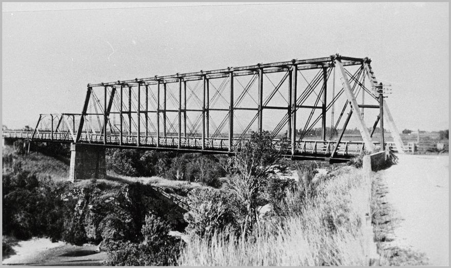 The Ballance Bridge was constructed over the Manawatu River in 1904 and served until 1968 when it was closed, as it was thought to be unsafe. This wooden bridge was then replaced by an iron-Concrete bridge which opened in 1971. The road away to the right leads into the Manawatu Gorge.