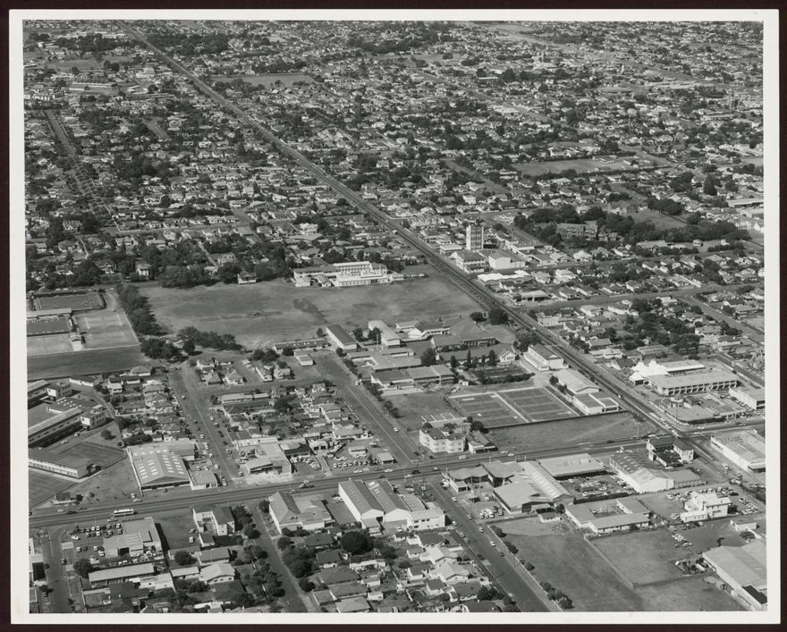 Aerial photograph of properties on Rangitikei Street, Palmerston North.