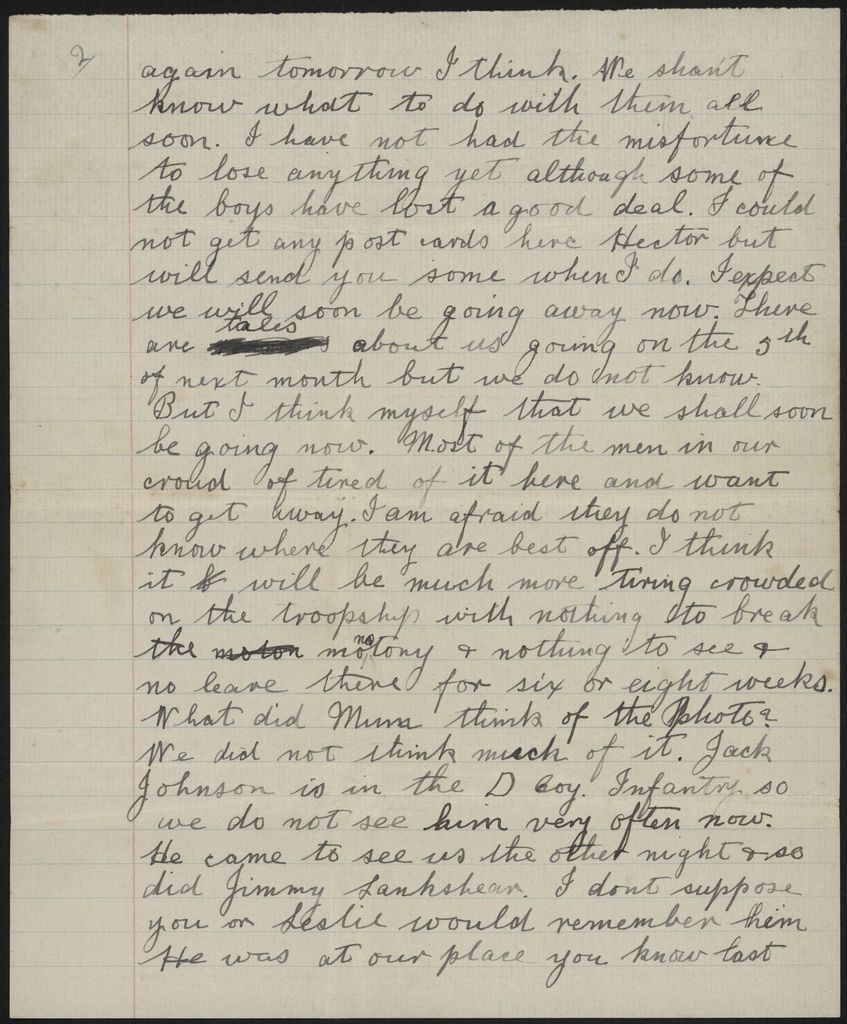 Letter home from training, during WWI