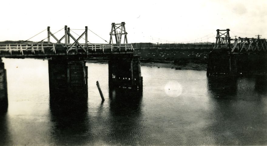 One of a group of photographs from Ron Grammer's working life in bridge engineering in the 1940s and 1950s. Unidentified bridge.