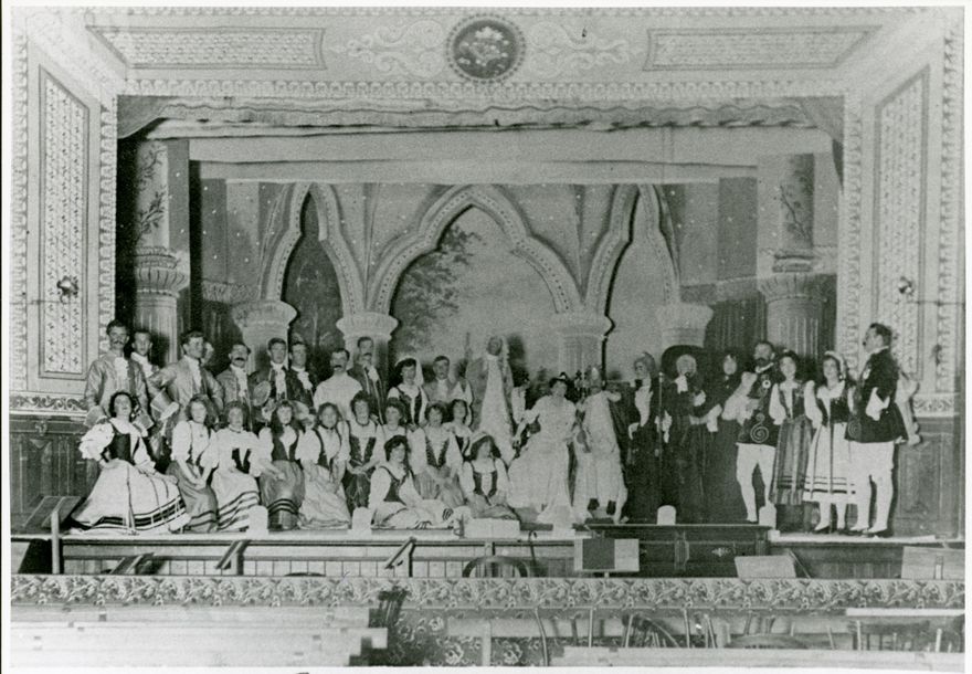"The Gondoliers" was performed in Palmerston North from 17-19 July 1901. According to newspaper accounts, the finale night was notable because a "flash photograph" was taken of the audience, a "decided novelty in Palmerston North". The review from the Manawatu Evening Standard 19 July 1901 had this to say of the production, "The heavy rain and rough weather last night did not deter another large audience from witnessing the second performance of "The Gondoliers" by the Palmerston Operatic Society. This is perhaps the best compliment that could possibly be given to the Society, that for two consecutive nights there has been a larger audience than many of the professional companies have drawn. The handsome dresses, graceful dances, striking groupings and tuneful music of Sullivan's opera, and the finished manner in which they are presented by the Society, are no doubt the reasons of the great interest taken in the performance. The principals were all in good form last night and they were well supported by those to whom minor characters had been allotted. Mr P Lomax (The Duke of Plaza-Toro) received a decided encore for his solo "Duke of Plaza Toro (Limited)," while Miss Burr received a similar honor for her singing of "when I was married." Mr Palmer, as the Grand Inquisitor, had to repeat two of his items, "No possible doubt whatever," and "When everyone is somebody." Messrs Jupp, Warden and Rodgers as "Marco", "Giuseppe" and "Luiz" respectively, all acquitted themselves well. The quartette "In Contemplative Fashion," by Mrs Lightwood (Tessa), Miss Hogan (Gianetta), and Messrs Warden and Jupp received a vigorous recall. Mrs Schwarz, as "Casilda,' also gave a good interpretation of the part. The choruses by the Gondoliere and Contadine were all given in a spirited and hearty fashion which drew forth the applause of the audience. Mr Orchard had the orchestra and performers well under control and the success of the piece was in a great measure due to his efforts. The two dances, the Gavotte and Cachuca, had to be repeated to satisfy the audience. Mr Orchard also acted as stage manager, great assistance being given in this respect by Mr J. C. Lane. Mr H Muller was mechanist, while the duties of secretary have been satisfactorily carried out by Mr T L Buick. The performance will be repeated to-night."