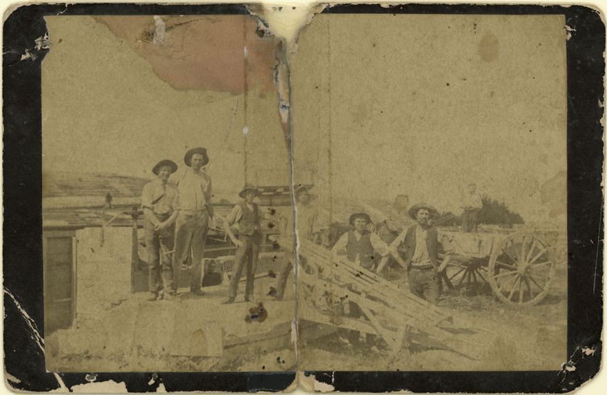 The brickyard was at the corner of Church Street and Alexandra Street (now Victoria Avenue) and this view shows the horse-powered mixer, for mixing clay and water. Not the long pole with the counter weight and wheelbarrow in foreground.