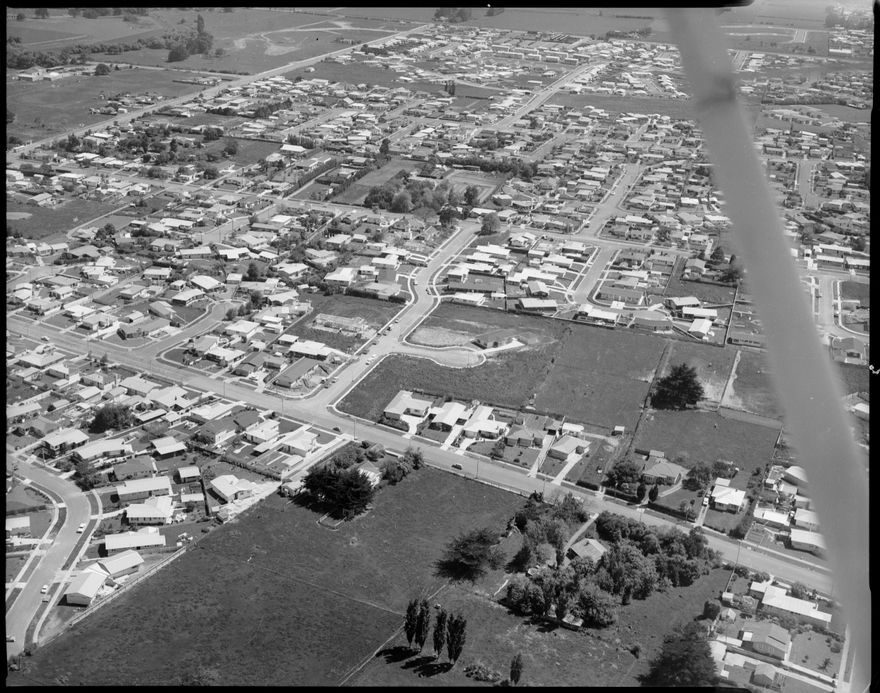 This aerial is believed to be set in Palmerston North. Can you identify the location? Please use the comments tab to let us know so we can update the information attached to this record.